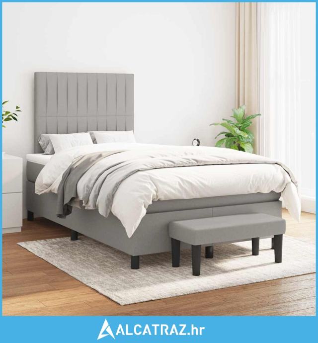 Krevet s oprugama i madracem svjetlosivi 120x190 cm od tkanine - NOVO