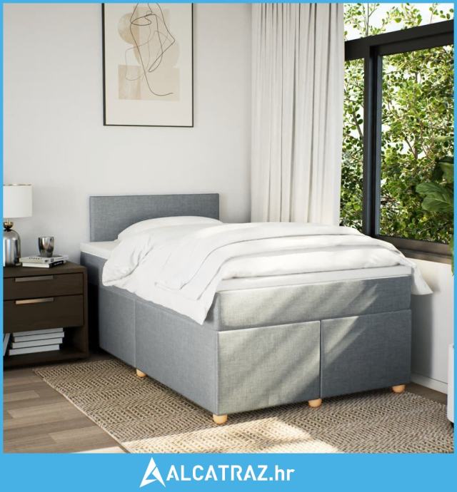 Krevet s oprugama i madracem svjetlosivi 120x190 cm od tkanine - NOVO