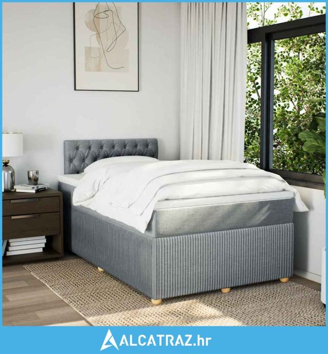 Krevet s oprugama i madracem svjetlosivi 120x190 cm od tkanine - NOVO