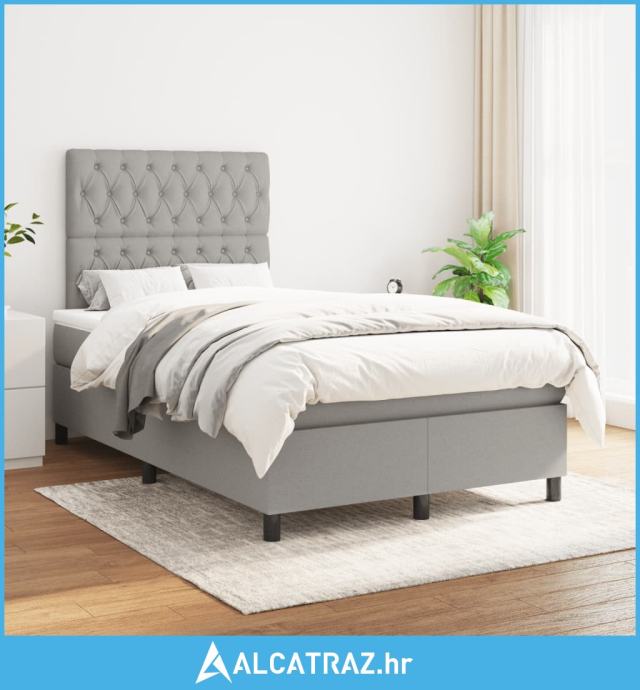 Krevet s oprugama i madracem svjetlosivi 120x190 cm od tkanine - NOVO