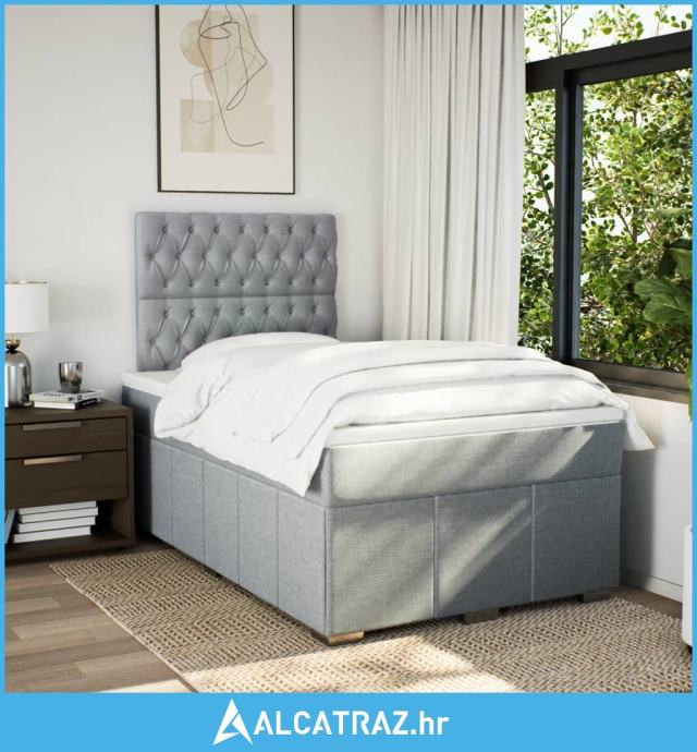 Krevet s oprugama i madracem svjetlosivi 120x190 cm od tkanine - NOVO
