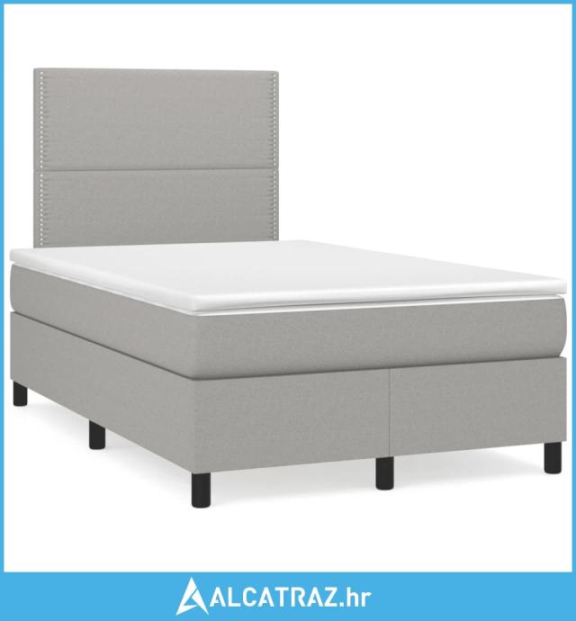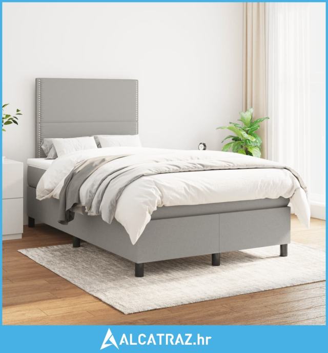 Krevet s oprugama i madracem svjetlosivi 120x190 cm od tkanine - NOVO