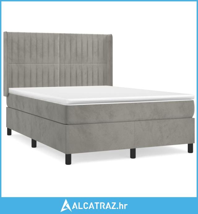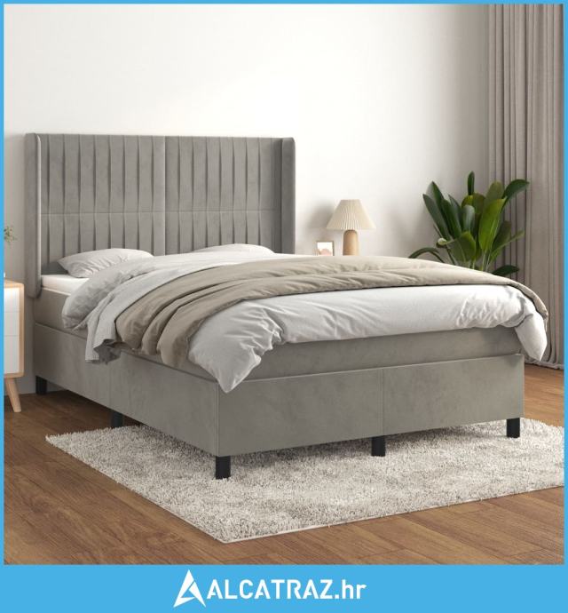 Krevet s oprugama i madracem svjetlosivi 140x190 cm baršunasti - NOVO