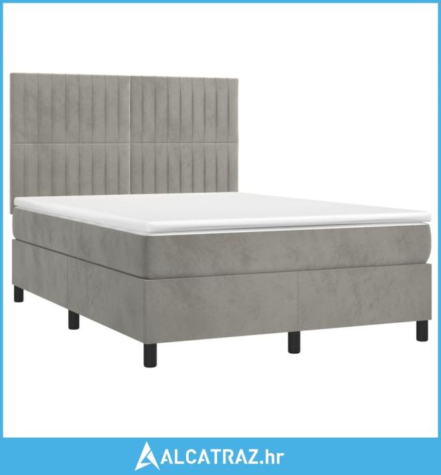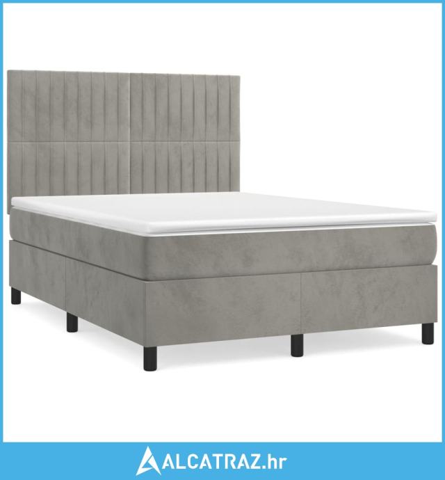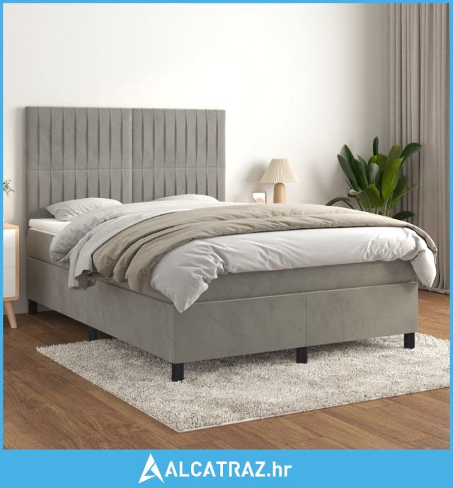 Krevet s oprugama i madracem svjetlosivi 140x190 cm baršunasti - NOVO