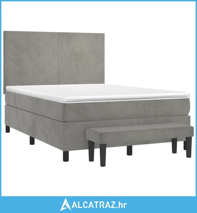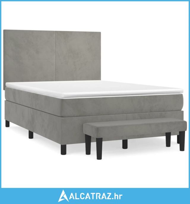 Krevet s oprugama i madracem svjetlosivi 140x190 cm baršunasti - NOVO