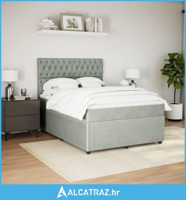 Krevet s oprugama i madracem svjetlosivi 140x190 cm baršunasti - NOVO