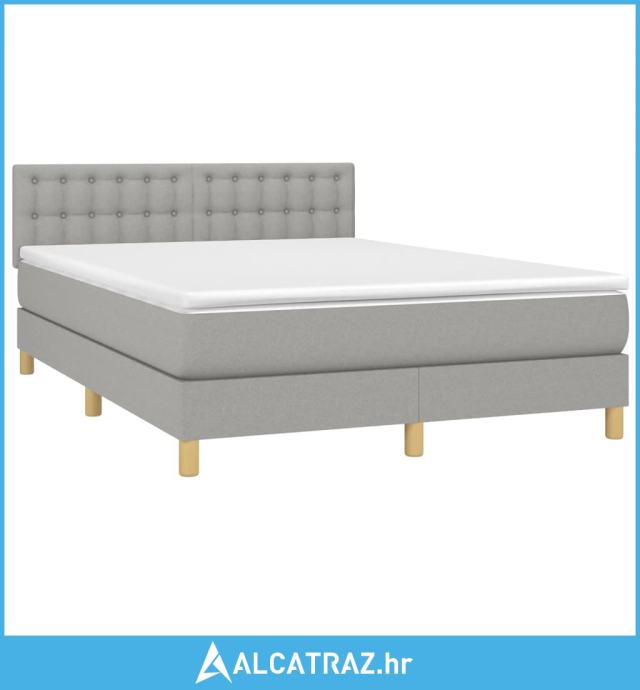 Krevet s oprugama i madracem svjetlosivi 140x190 cm od tkanine - NOVO