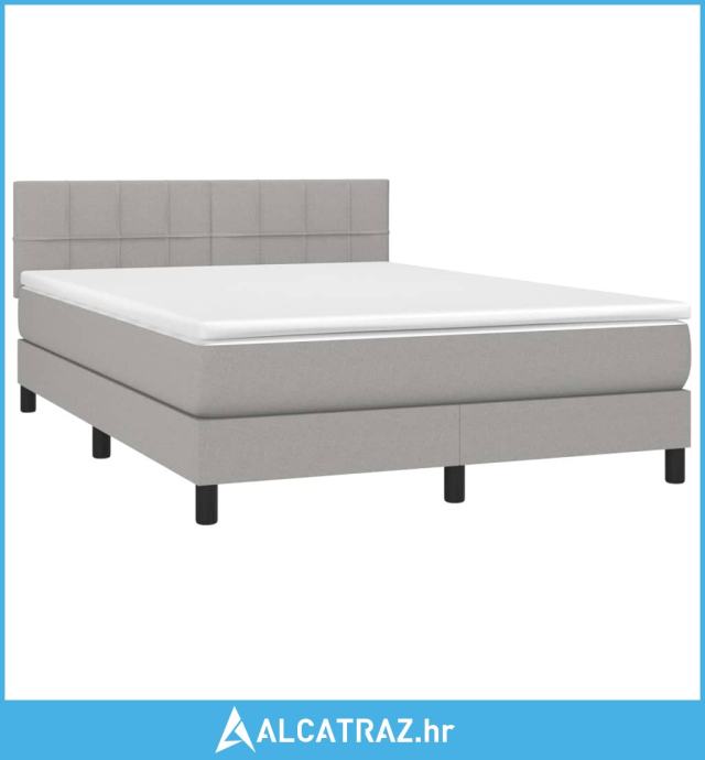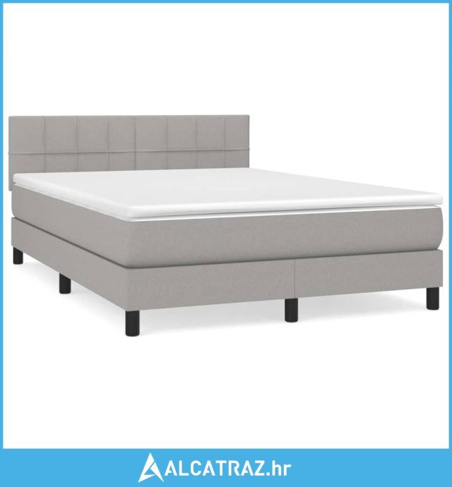 Krevet s oprugama i madracem svjetlosivi 140x190 cm od tkanine - NOVO
