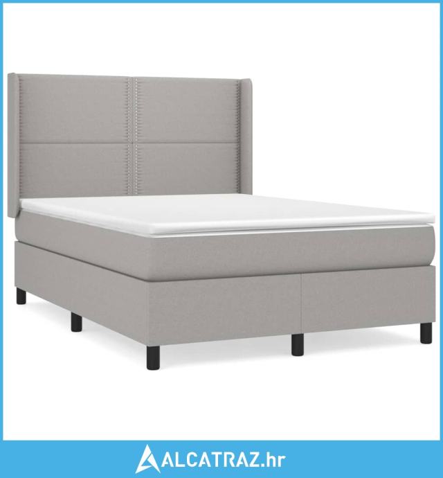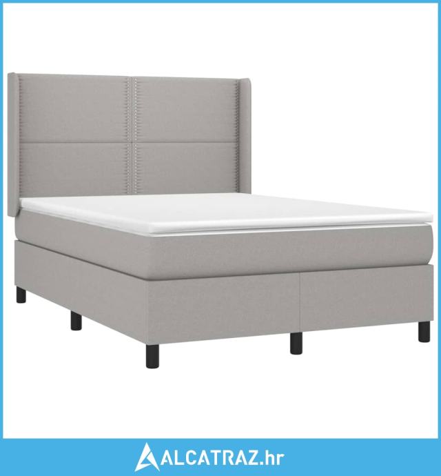 Krevet s oprugama i madracem svjetlosivi 140x190 cm od tkanine - NOVO