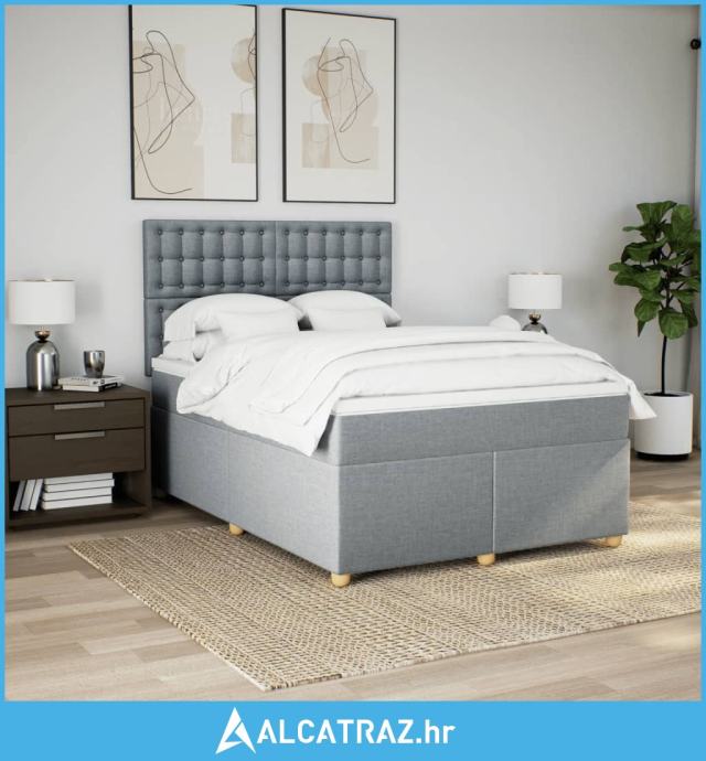 Krevet s oprugama i madracem svjetlosivi 140x190 cm od tkanine - NOVO
