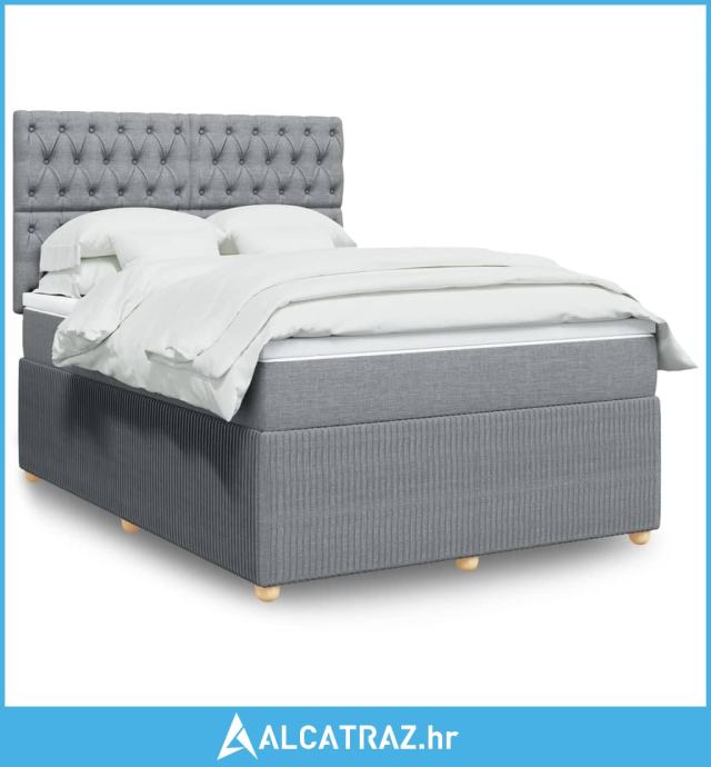 Krevet s oprugama i madracem svjetlosivi 140x190 cm od tkanine - NOVO