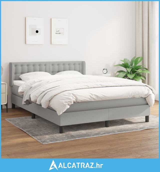 Krevet s oprugama i madracem svjetlosivi 140x190 cm od tkanine - NOVO