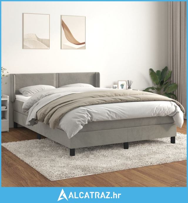 Krevet s oprugama i madracem svjetlosivi 140x200 cm baršunasti - NOVO