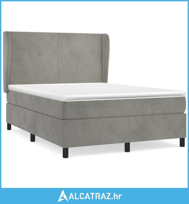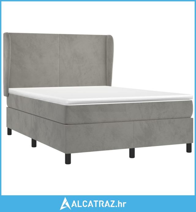 Krevet s oprugama i madracem svjetlosivi 140x200 cm baršunasti - NOVO