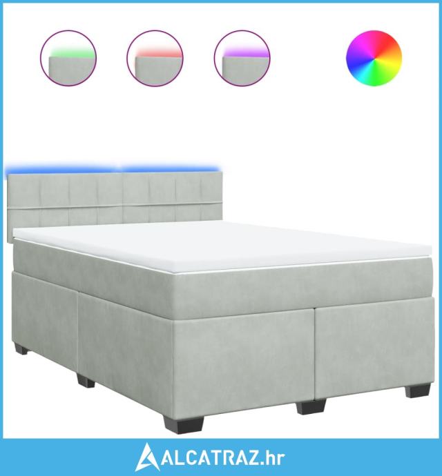Krevet s oprugama i madracem svjetlosivi 140x200 cm baršunasti - NOVO