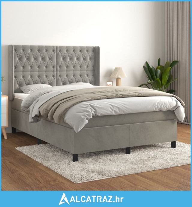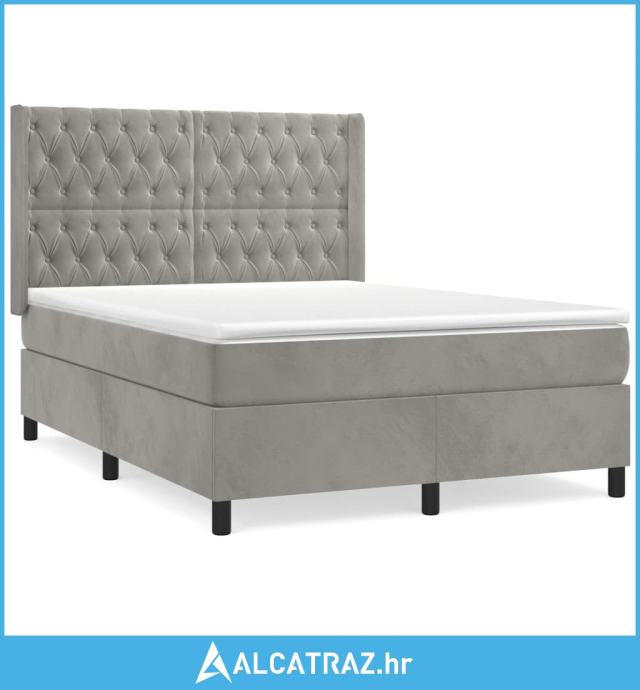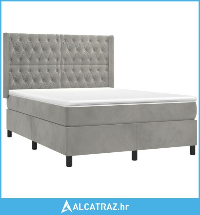 Krevet s oprugama i madracem svjetlosivi 140x200 cm baršunasti - NOVO