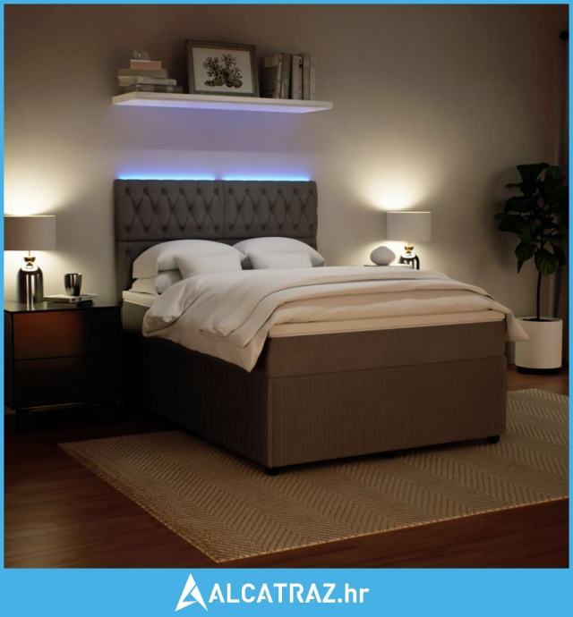 Krevet s oprugama i madracem svjetlosivi 140x200 cm baršunasti - NOVO
