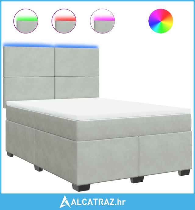 Krevet s oprugama i madracem svjetlosivi 160x200 cm baršunasti - NOVO
