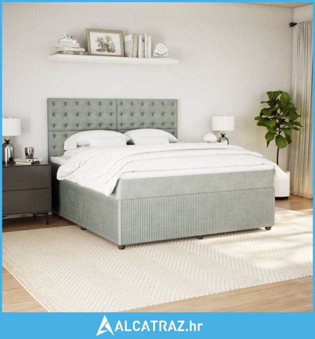 Krevet s oprugama i madracem svjetlosivi 180x200 cm baršunasti - NOVO