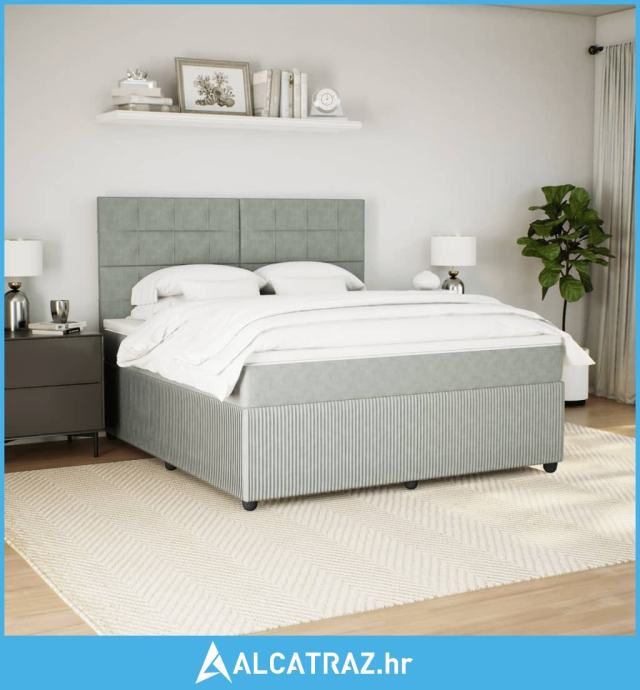 Krevet s oprugama i madracem svjetlosivi 180x200 cm baršunasti - NOVO