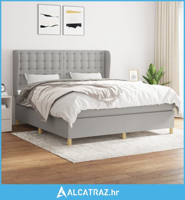 Krevet s oprugama i madracem svjetlosivi 180x200 cm od tkanine - NOVO