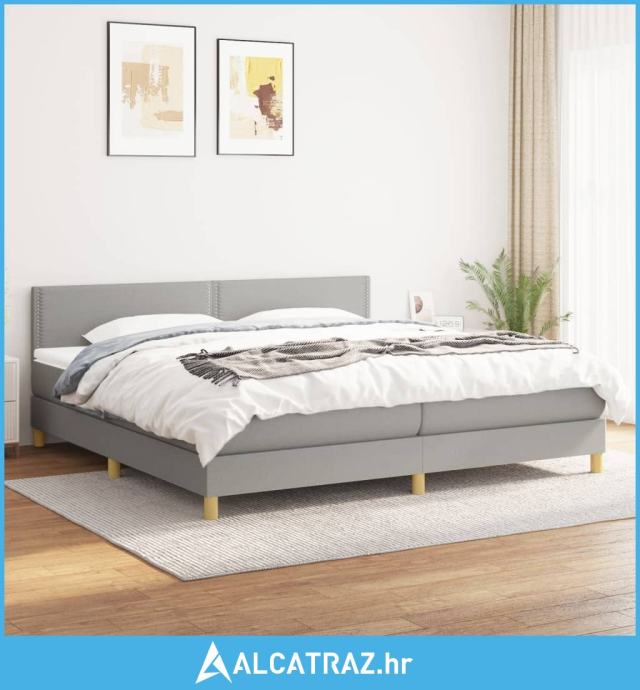 Krevet s oprugama i madracem svjetlosivi 200 x 200cm od tkanine - NOVO