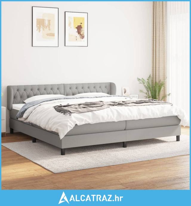 Krevet s oprugama i madracem svjetlosivi 200 x 200cm od tkanine - NOVO