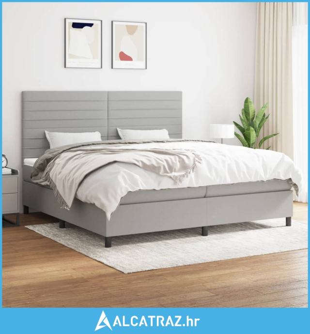 Krevet s oprugama i madracem svjetlosivi 200 x 200cm od tkanine - NOVO