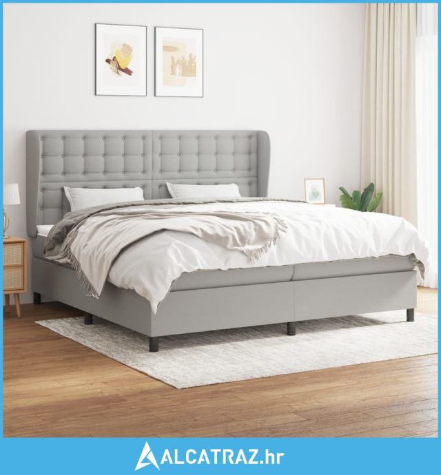 Krevet s oprugama i madracem svjetlosivi 200 x 200cm od tkanine - NOVO
