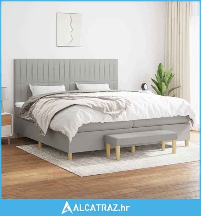 Krevet s oprugama i madracem svjetlosivi 200 x 200cm od tkanine - NOVO