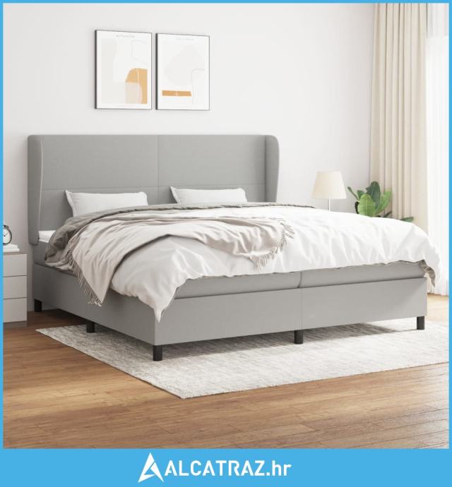 Krevet s oprugama i madracem svjetlosivi 200 x 200cm od tkanine - NOVO
