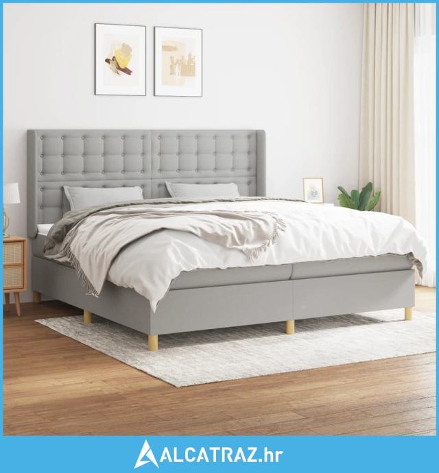Krevet s oprugama i madracem svjetlosivi 200 x 200cm od tkanine - NOVO