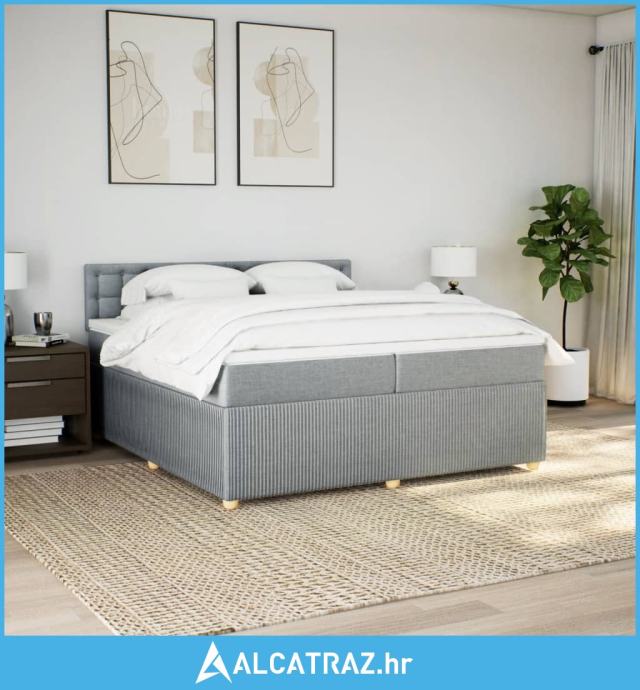 Krevet s oprugama i madracem svjetlosivi 200 x 200cm od tkanine - NOVO