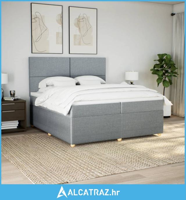 Krevet s oprugama i madracem svjetlosivi 200 x 200cm od tkanine - NOVO