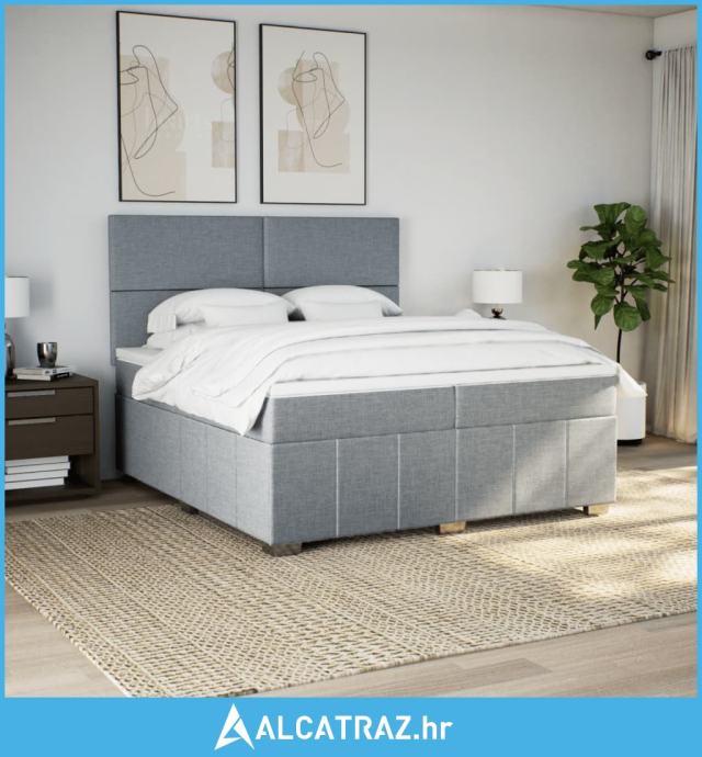 Krevet s oprugama i madracem svjetlosivi 200 x 200cm od tkanine - NOVO