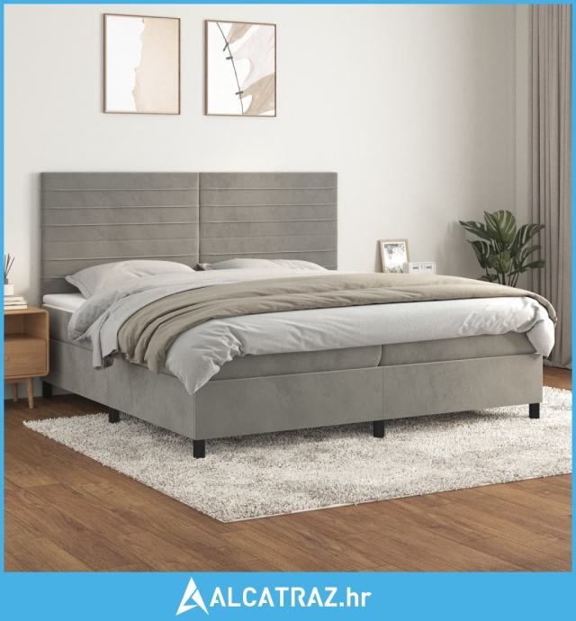 Krevet s oprugama i madracem svjetlosivi 200x200 cm baršunasti - NOVO