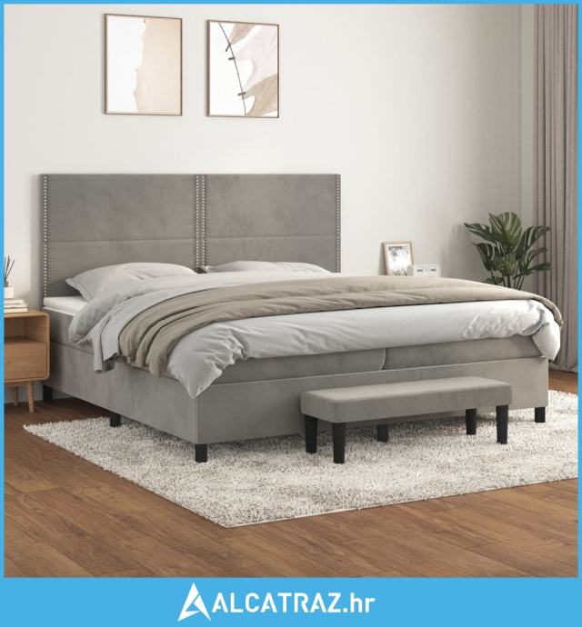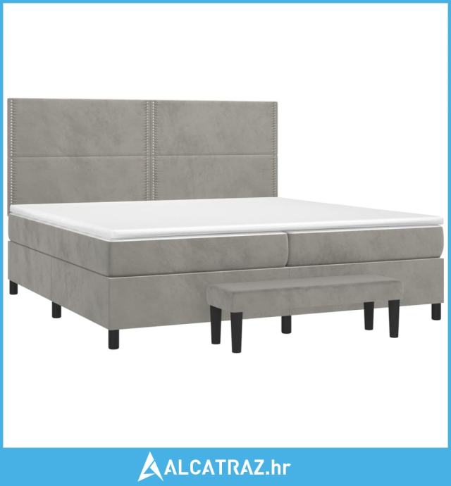 Krevet s oprugama i madracem svjetlosivi 200x200 cm baršunasti - NOVO