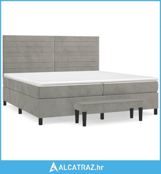 Krevet s oprugama i madracem svjetlosivi 200x200 cm baršunasti - NOVO