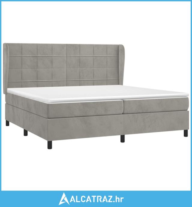 Krevet s oprugama i madracem svjetlosivi 200x200 cm baršunasti - NOVO