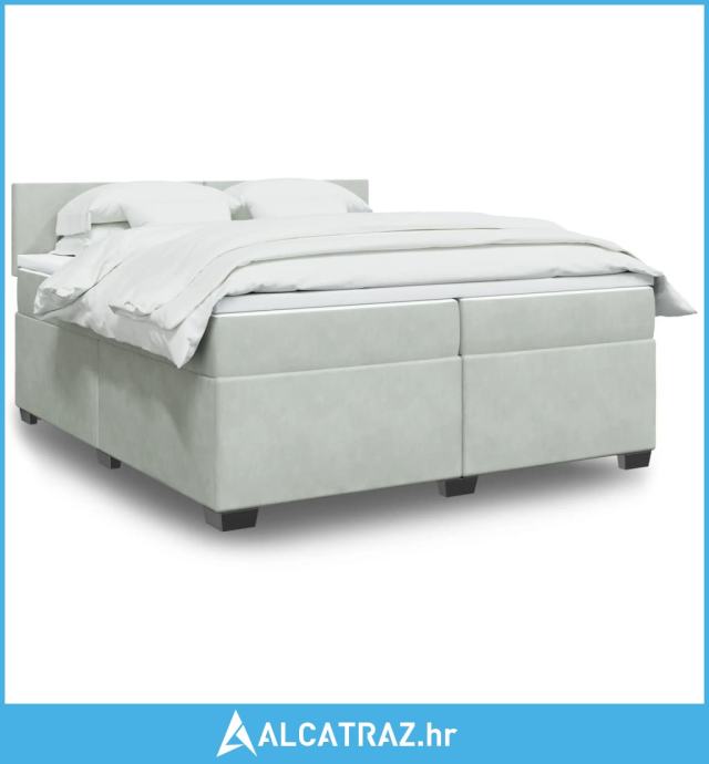 Krevet s oprugama i madracem svjetlosivi 200x200 cm baršunasti - NOVO