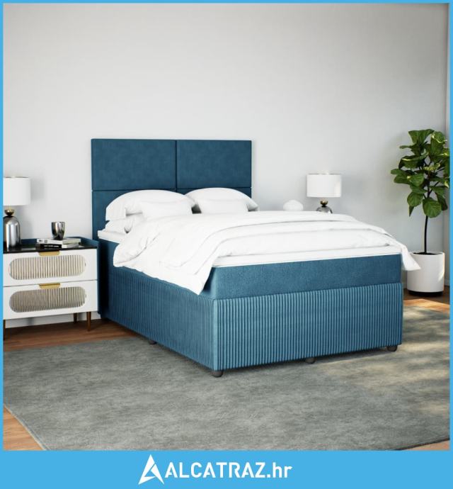 Krevet s oprugama i madracem tamnoplavi 140x190 cm baršunasti - NOVO