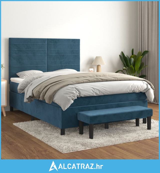 Krevet s oprugama i madracem tamnoplavi 140x200 cm baršunasti - NOVO