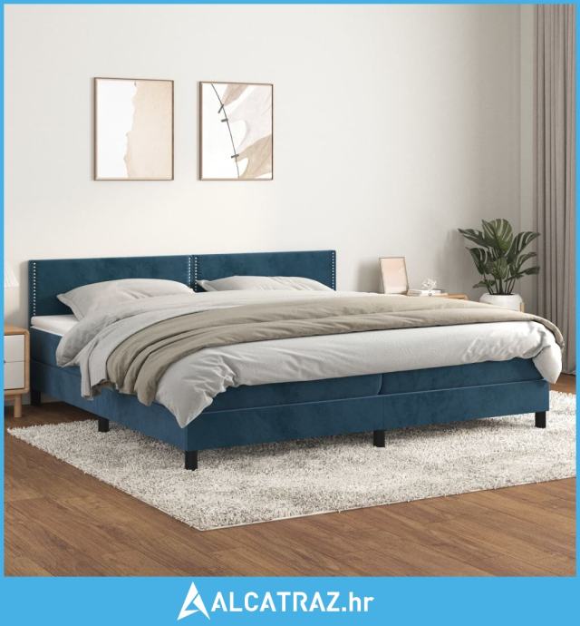 Krevet s oprugama i madracem tamnoplavi 200x200 cm baršunasti - NOVO