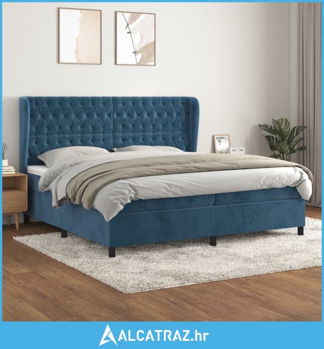 Krevet s oprugama i madracem tamnoplavi 200x200 cm baršunasti - NOVO