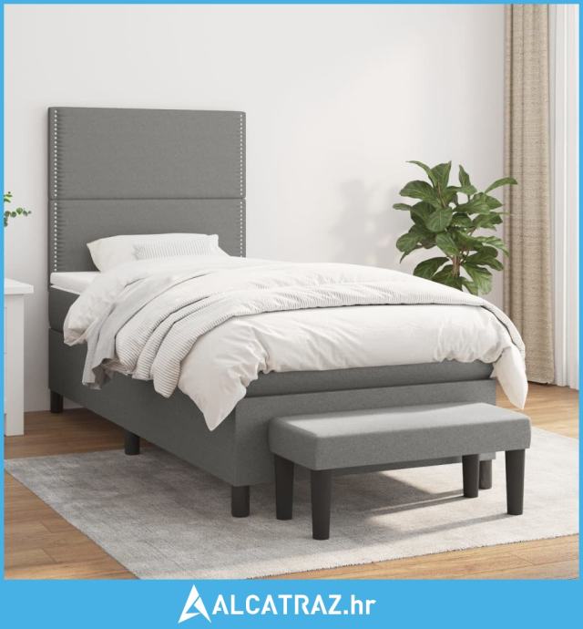 Krevet s oprugama i madracem tamnosivi 100 x 200 cm od tkanine - NOVO