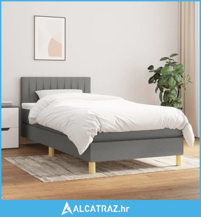 Krevet s oprugama i madracem tamnosivi 100 x 200 cm od tkanine - NOVO