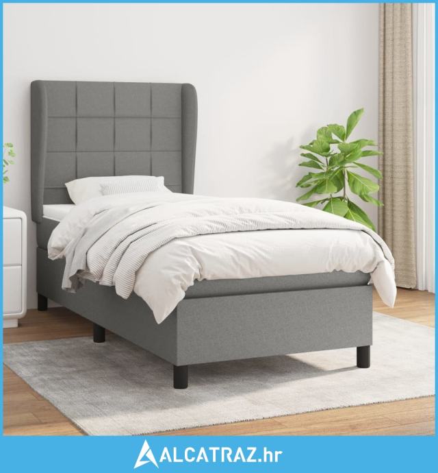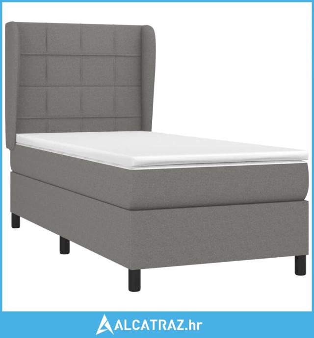 Krevet s oprugama i madracem tamnosivi 100 x 200 cm od tkanine - NOVO