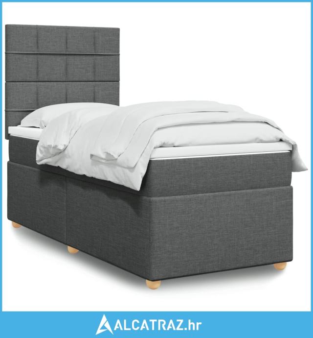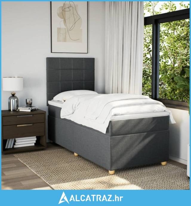 Krevet s oprugama i madracem tamnosivi 100 x 200 cm od tkanine - NOVO