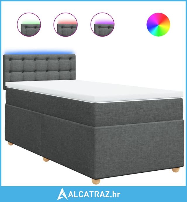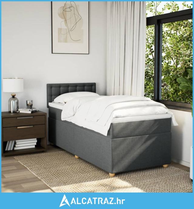 Krevet s oprugama i madracem tamnosivi 100 x 200 cm od tkanine - NOVO