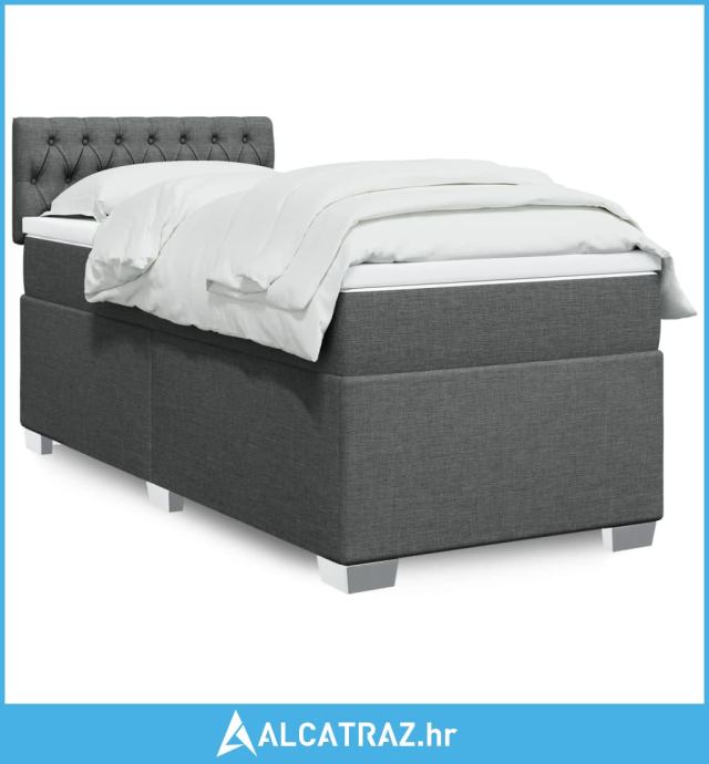 Krevet s oprugama i madracem tamnosivi 100 x 200 cm od tkanine - NOVO
